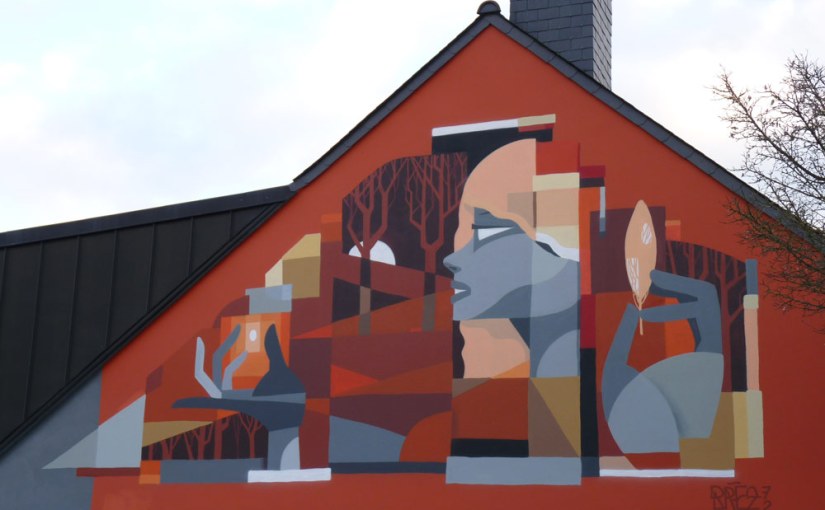 Impregnated by the practice of graffiti, which he began in 1990 in Rennes, Brez develops a painting that seems to use codes from cubism, constructivism or futurism. However, his graphic language is more certainly the heritage of the research of a letter style, a quest intimately related to the world of graffiti writing. Between abstraction and figuration, his In Situ paintings are inspired by the panorama while playing with the surface of the chosen places. The workshop work feeds on the forms inherited from graffiti and adapts to the limited frame of the canvas. He feeds again the painting in the public space in a permanent coming and going. View all posts by brez72