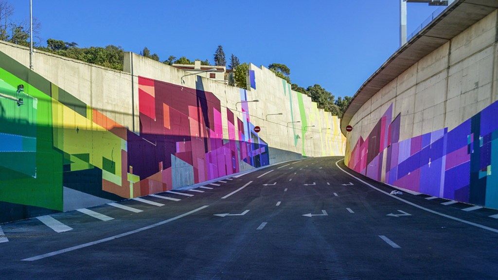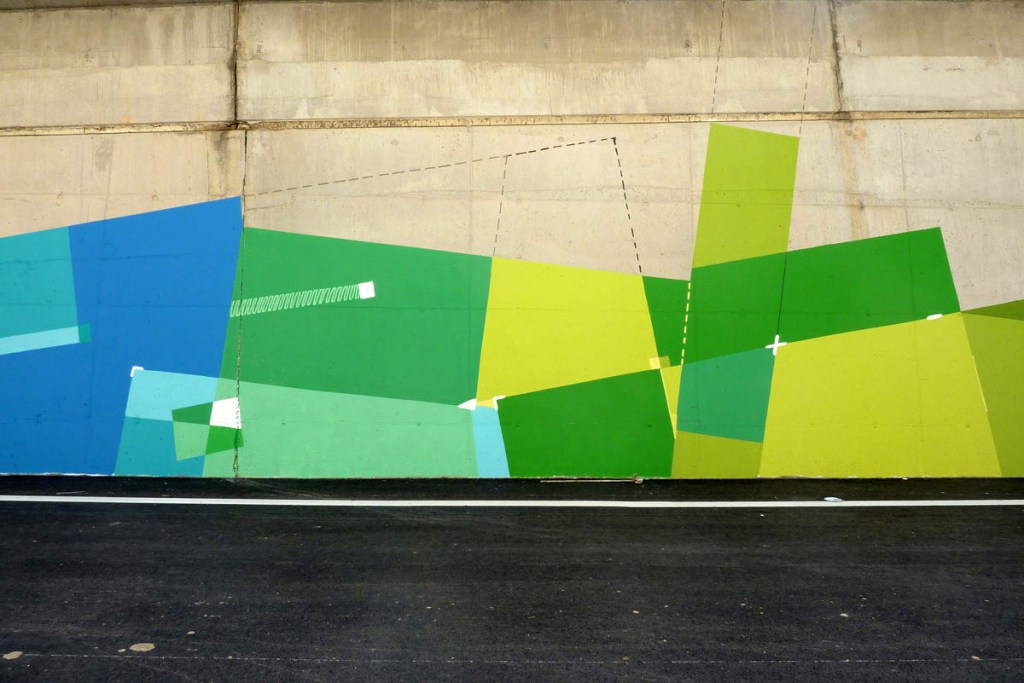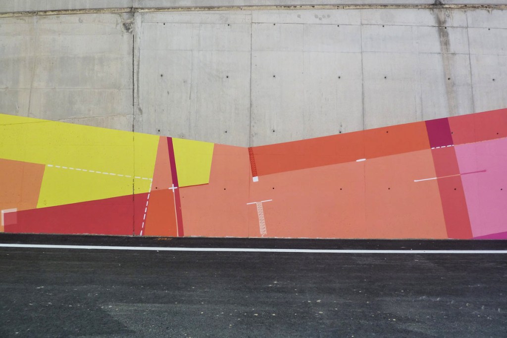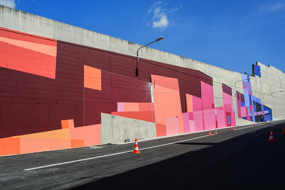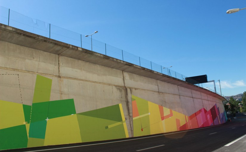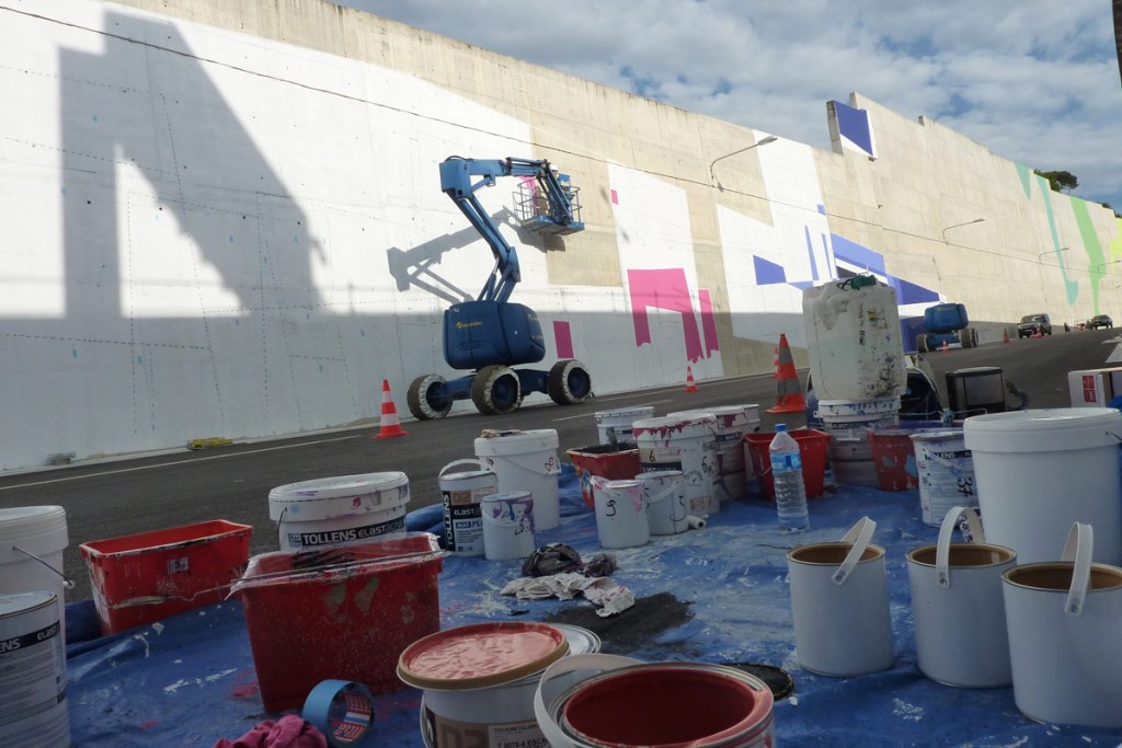 Acrylic, spray paint artwork on a 2000M² concrete wall for the new Marseille motorway.