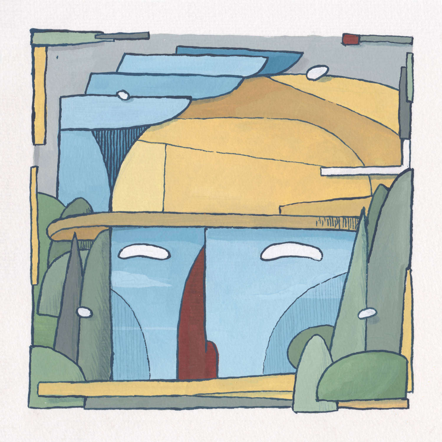 Back in my studio, this base guides the creation of the series. As luck would have it, the canvases I had prepared with recycled backgrounds match these two colors perfectly. The rest is developed as I create, like an intuitive response to this place steeped in history.