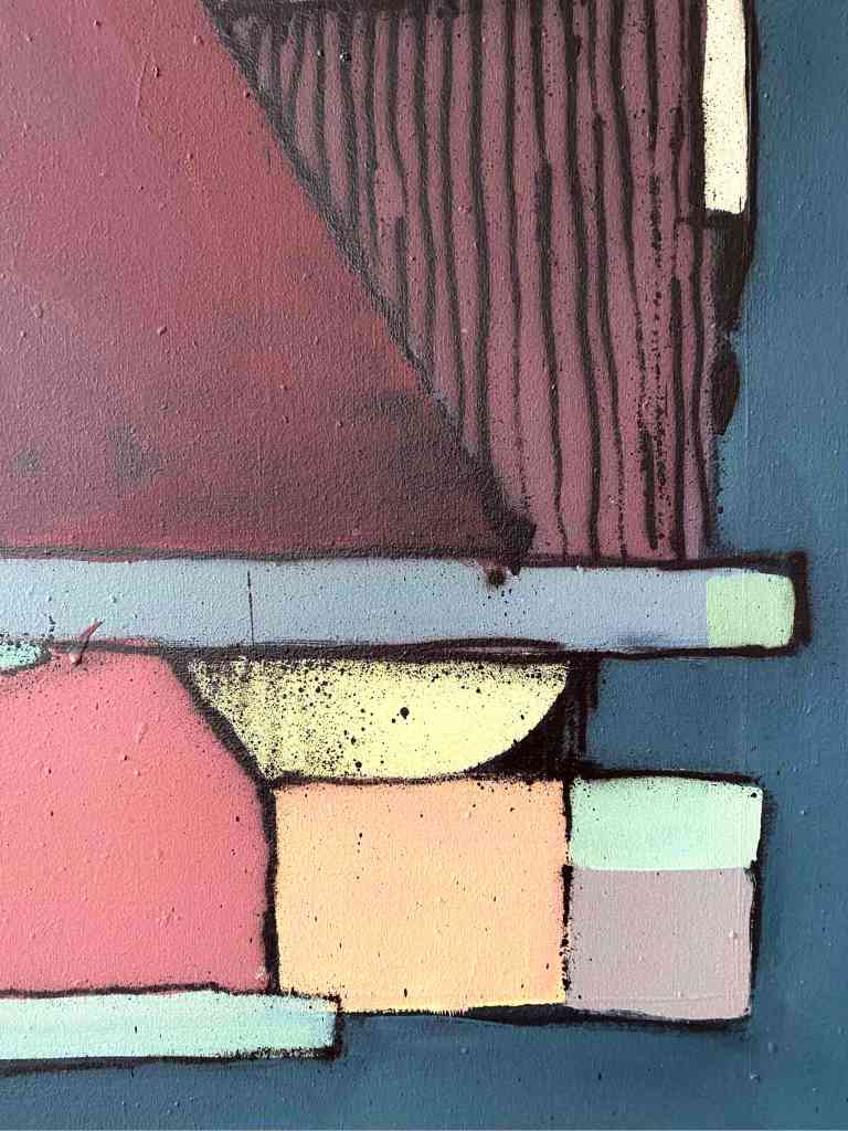 De retour en atelier, cette base guide la crรฉation de la sรฉrie. Le hasard fait bien les choses : les toiles que jโavais prรฉparรฉes avec des fonds de rรฉcupรฉration sโaccordent parfaitement avec ces deux teintes. Le reste sโรฉlabore au fil de la crรฉation, comme une rรฉponse intuitive ร ce lieu chargรฉ dโhistoire.