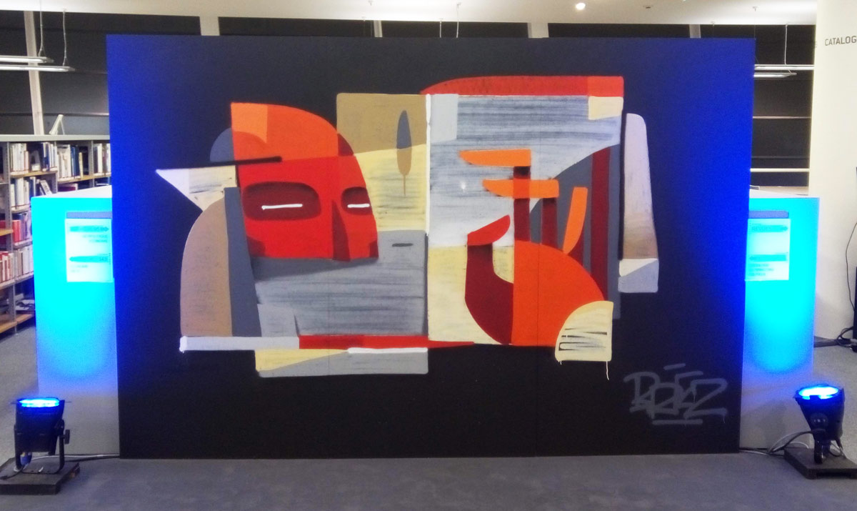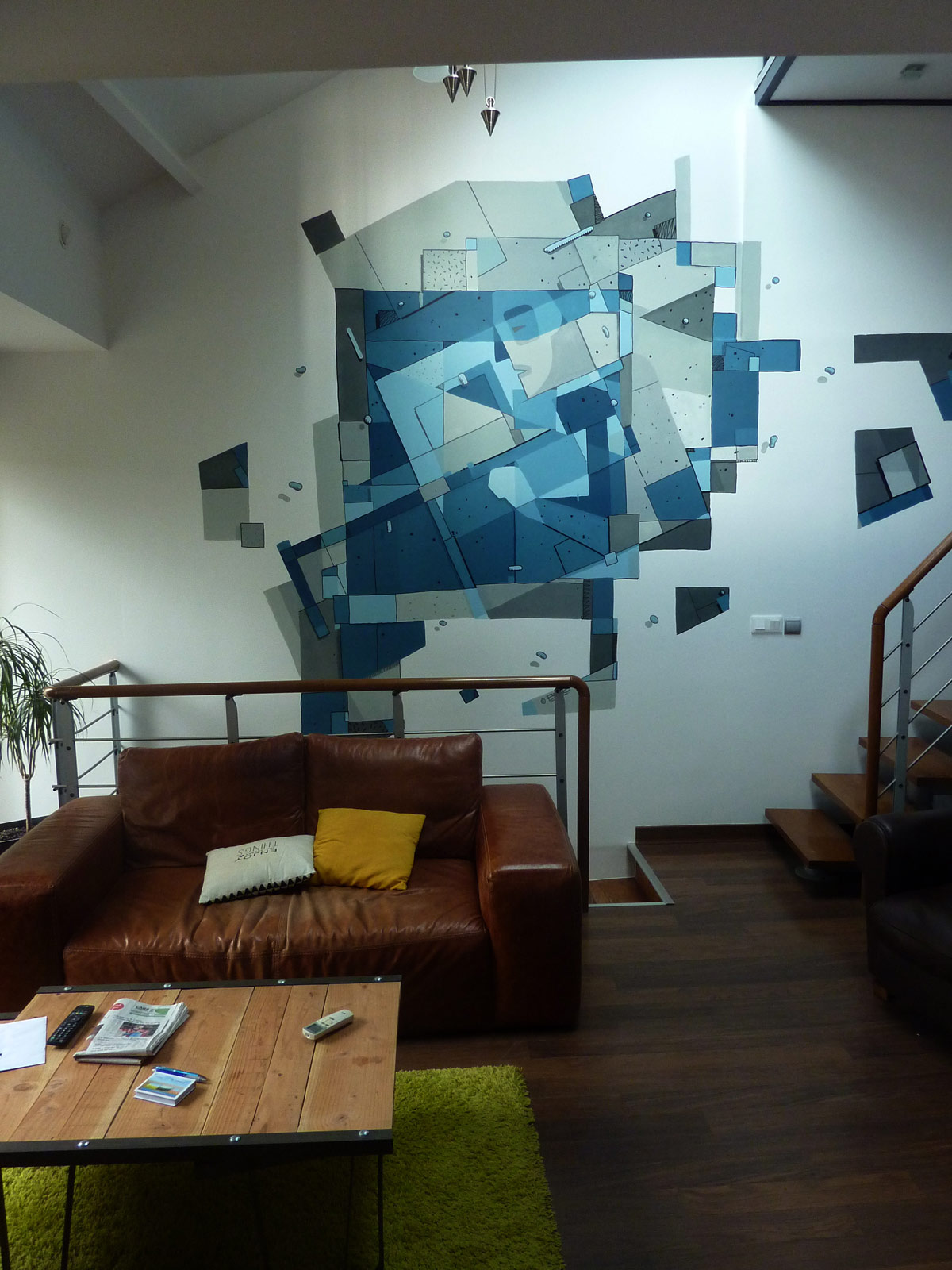Pierre-marie is a good harpsichord player, he asked me to paint this abstract composition wall in his living room in Rennes. The intention was to paint a composition with a musical feeling and a flat design, i also painted some lines are detached from the background that remind me the typical sound of the harpsichord.