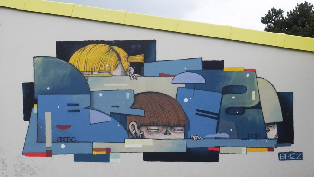 I was invited in 2017 by Le mur organisation with 30 other artists to paint three walls in Azureva, a Holidays village in Normandie.