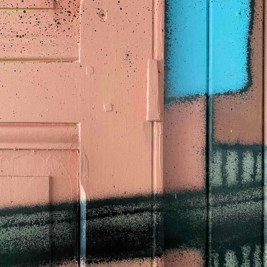 I had long wanted to translate my abstract lettering into three-dimensional forms. The Framework exhibition allowed me to experiment with this idea. Here, the supportsโdoor elements and various reclaimed panelsโbecome part of the composition. The materials are sourced and cut on-site, and the paint is also applied within the creative space, an old industrial hall. A photograph taken in this space captures the process.