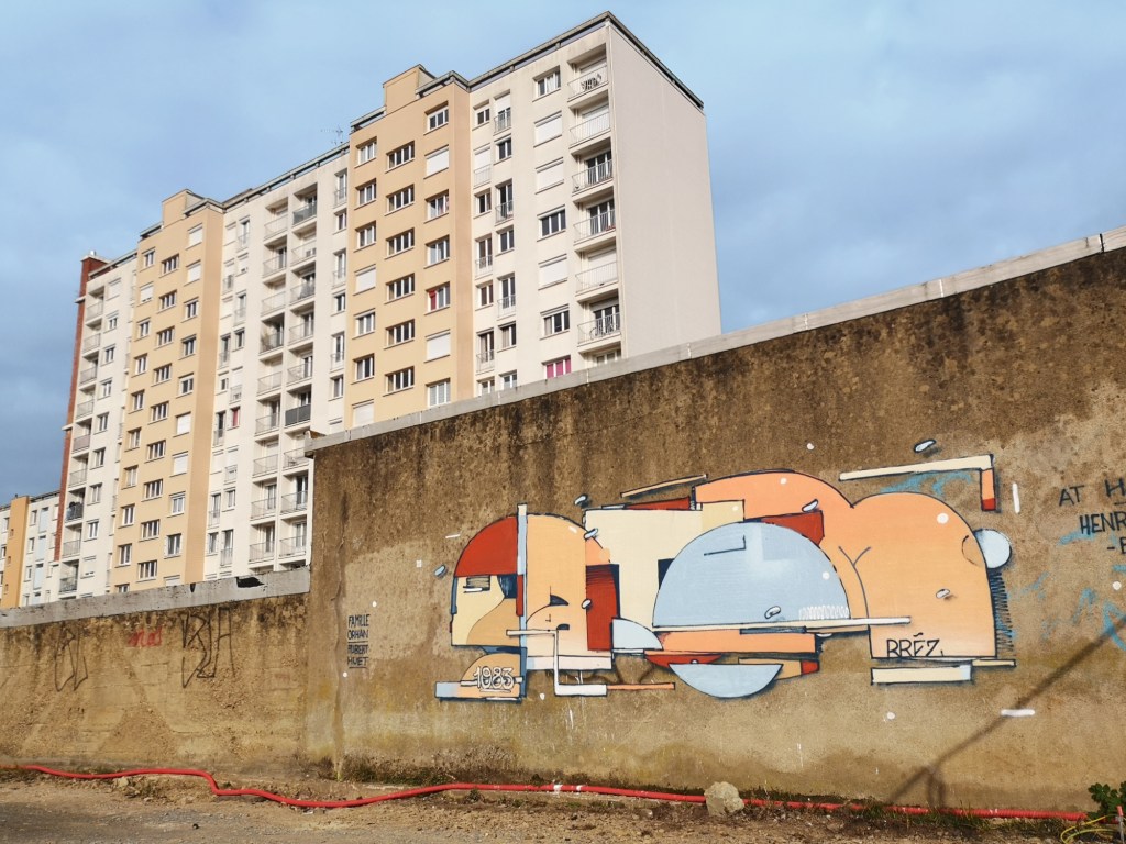 Jโy passe une matinรฉe, seul, avec un matรฉriel minimaliste : quatre bouteilles de peinture primaire et une bombe dโaรฉrosol. Dans lโun des bรขtiments, une piรจce en grande partie vandalisรฉe rรฉvรจle un mur en parpaing de bรฉton, dissimulรฉ derriรจre un mur de briques rouges en terre cuite, aujourdโhui dรฉtruit et effondrรฉ ร ses pieds. Le gris des parpaings et le rouge terre cuite des briques deviennent la base chromatique de cette future peinture. Sur place, je rรฉcupรจre quelques รฉlรฉments qui mโinspirent, ainsi quโune planche qui me servira de palette.